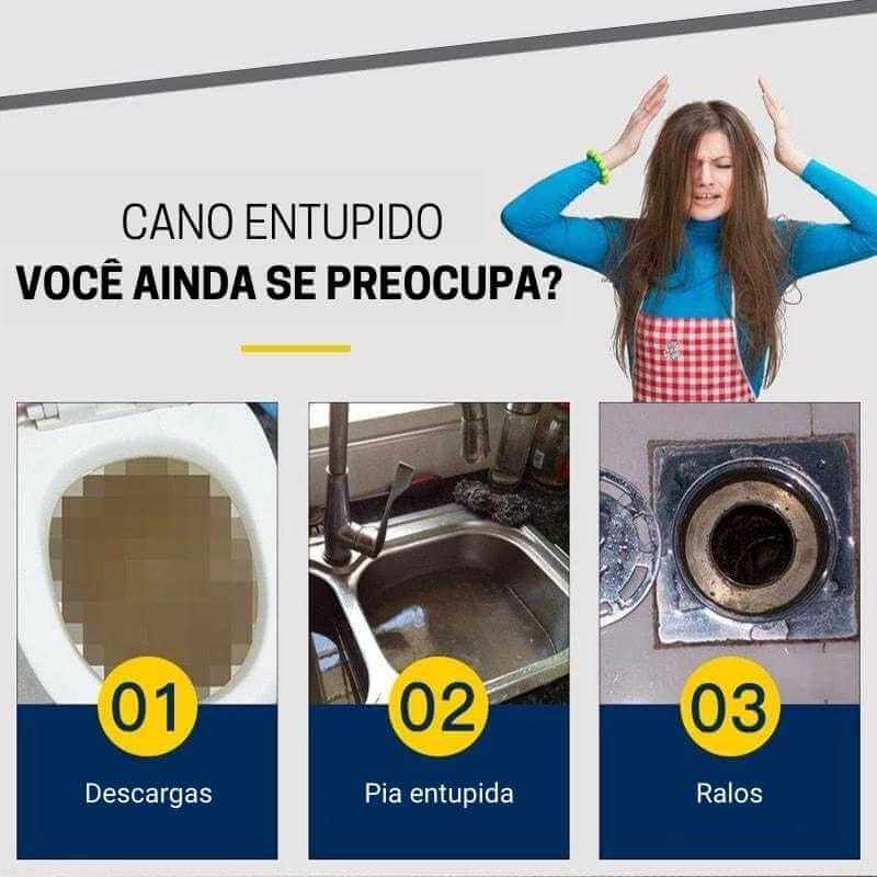 - Usa sua alta densidade para se agarrar a tubulações e liquefazer obstruções de dreno