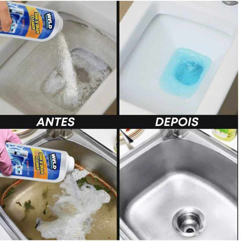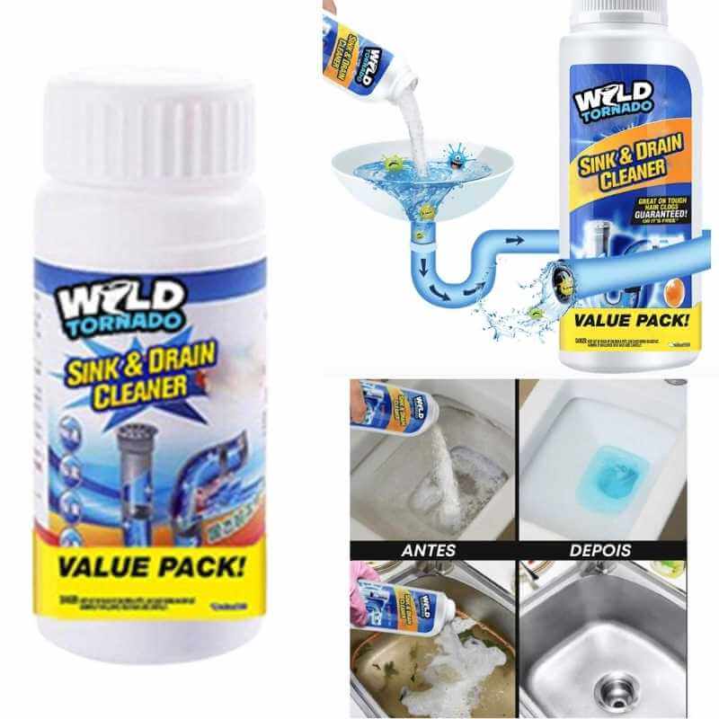 Potente dissipador e dreno Cleaner começa o trabalho feito por dissolução de graxa, cabelo, papel, espuma de sabão, óleos e matéria orgânica facilmente.